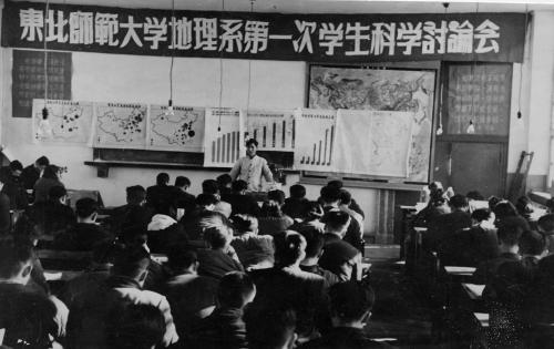 3月26日,我校3月5日开幕的第一届学生科学讨论会于今天结束。成仿吾校长到会讲话说:“高等学校一个任务是发展学生的独立工作的熟练技巧,以及实践中应用所学知识的技能。这一任务由多方面工作来实现。一种重要办法就是学生的科研活动,这是培养德才兼备的人民教师所不可缺少的。”“我们在学习期间如果不通过开展科研来培养自己独立工作能力,将来就不能独立解决工作中所遇到的问题。”他号召同学们:“敢于向陈旧的科学进行斗争,并为新的科学开辟道路。”
